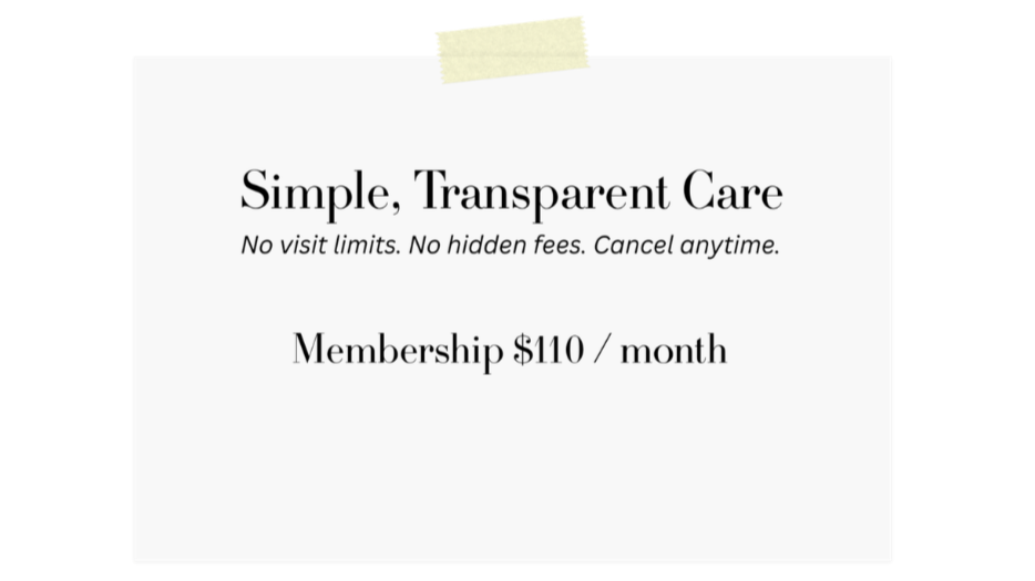 After years in traditional practice, I saw firsthand the limits of a system that often prioritizes productivity and insurance requirements over time and connection. It became clear that my patients and I were both seeking a more connected and thoughtful experience of care.